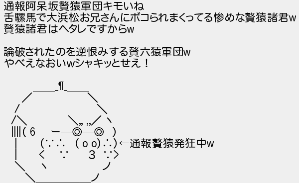 通報阿呆坂猿軍団キモいね 舌馬で大浜松お兄さんにボコられまくってる惨めな猿諸君 猿諸君はヘタレですから 論破されたのを逆恨みする六猿軍団 やべえなおいシャキッとせえ! ー 通報猿発狂中 3 ノ ノ