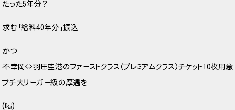 たった年分? 求む給料年分振込 かつ 不幸岡羽田空港のファーストクラスプレミアムクラスチケット枚用意 プチ大リーガー級の厚遇を 喝