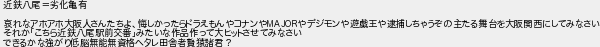 近鉄八尾劣化亀有 哀れなアホアホ大阪人さんたちよ悔しかったらドラえもんやコナンややデジモンや遊戯王や逮捕しちゃうぞの主たる舞台を大阪関西にしてみなさい それかこちら近鉄八尾駅前交番みたいな作品作って大ヒットさせてみなさい できるかな強がり低脳無能無資格ヘタレ田舎者猿諸君?