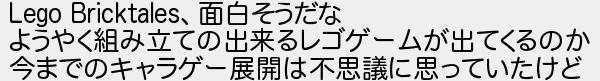 面白そうだな ようやく組み立ての出来るレゴゲームが出てくるのか 今までのキャラゲー展開は不思議に思っていたけど