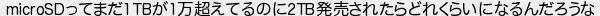 660: (ワッチョイ 1b6e-PsJ2 [58.191.202.48]) [] 2022/09/28(水) 12:58:43.79 ID:lOFIxSjz0 microSDってまだ1TBが1万超えてるのに2TB発売されたらどれくらいになるんだろうな http://pug.5ch.net/test/read.cgi/famicom/1663807073/660