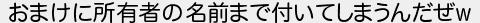 653: (ワッチョイ bf9e-yCt5 [163.139.170.243]) [sage] 2025/12/22(月) 12:03:00.20 ID:xkxDkxcU0 おまけに所有者の名前まで付いてしまうんだぜw http://egg.5ch.net/test/read.cgi/ffo/1761883129/653