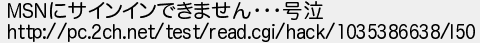 28: _ [age] 02/10/24 00:42 ID:??? MSNにサインインできません・・・号泣 http://pc.2ch.net/test/read.cgi/hack/1035386638/l50 http://mevius.5ch.net/test/read.cgi/hack/1034577340/28