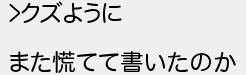 754: [sage] 2021/04/20(火) 18:44:02 ID:??? >クズように また慌てて書いたのか http://mevius.5ch.net/test/read.cgi/hack/1614549113/754