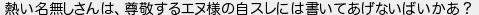 熱い名無しさんは尊敬するエヌ様の自スレには書いてあげないばいかあ?