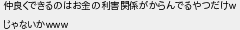 仲良くできるのはお金の利害関係がからんでるやつだけ じゃないか