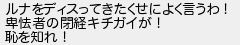 ルナをディスってきたくせによく言うわ! 卑怯者の閉経キチガイが! 恥を知れ!