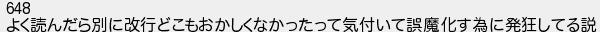 よく読んだら別に改行どこもおかしくなかったって気付いて誤魔化す為に発狂してる説