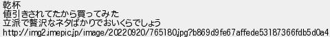 586: ニヤリン( ̄ー ̄) ◆NiyaRinLv1XL [sage] 2022/09/20(火) 21:17:16.93 ID:0 乾杯 値引きされてたから買ってみた 立派で贅沢なネタばかりでおいくらでしょう http://img2.imepic.jp/image/20220920/765180.jpg?b869d9fe67affede53187366fdb5d0a4 http://medaka.5ch.net/test/read.cgi/honobono/1663269513/586