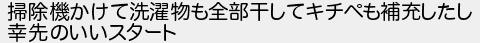 掃除機かけて洗濯物も全部干してキチペも補充したし 幸先のいいスタート