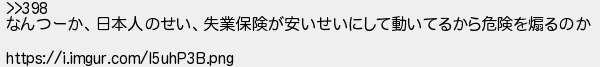 なんつーか日本人のせい失業保険が安いせいにして動いてるから危険を煽るのか