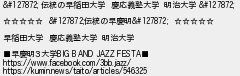 57: [] 2025/03/21(金) 19:02:01.62 ID:cChgbyxl 🎀 伝統の早稲田大学 慶応義塾大学 明治大学 🎀 ☆☆☆☆☆ 🎀伝統の早慶明🎀 ☆☆☆☆☆ 早稲田大学 慶応義塾大学 明治大学 ■早慶明3大学BIG BAND JAZZ FESTA■ https://www.facebook.com/3bb.jazz/ https://kumin.news/taito/articles/546325 http://medaka.5ch.net/test/read.cgi/jsaloon/1741663307/57