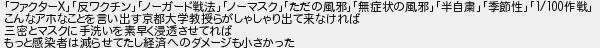 ファクター反ワクチンノーガード戦法ノーマスクただの風邪無症状の風邪半自粛季節性作戦 こんなアホなことを言い出す京都大学教授らがしゃしゃり出て来なければ 三密とマスクに手洗いを素早く浸透させてれば もっと感染者は減らせてたし経済へのダメージも小さかった