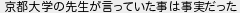 140: [] 2022/10/24(月) 17:34:47.61 ID:1LjA/478 京都大学の先生が言っていた事は事実だった http://pug.5ch.net/test/read.cgi/kinki/1663278814/140