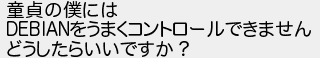 369: [] 2009/10/19(月) 07:52:11 ID:KYXxYSO5 童貞の僕には DEBIANをうまくコントロールできません どうしたらいいですか? http://mao.5ch.io/test/read.cgi/linux/1162356771/369