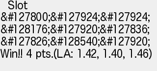 653: [sage] 2025/05/24(土) 11:13:55.68 ID:LU5EnwpW Slot 🌸🎴🎴 💰🎰🍜 🍒😜🎰 Win!! 4 pts.(LA: 1.42, 1.40, 1.46) http://mao.5ch.net/test/read.cgi/linux/1479499953/653