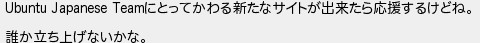 643: [] 2020/09/04(金) 00:14:45.07 ID:9m9ucdML Ubuntu Japanese Teamにとってかわる新たなサイトが出来たら応援するけどね。 誰か立ち上げないかな。 http://mao.5ch.net/test/read.cgi/linux/1597270181/643