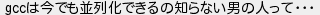 565: [sage] 2022/06/15(水) 08:44:49.09 ID:KCNepg4r gccは今でも並列化できるの知らない男の人って・・・ http://mao.5ch.net/test/read.cgi/linux/1620213913/565
