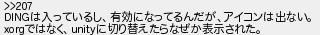 213: 200 (ワッチョイ 7f9a-/EyQ) [sage] 2022/09/03(土) 23:20:10.72 ID:+7Wb313N0 >>207 DINGは入っているし、有効になってるんだが、アイコンは出ない。 xorgではなく、unityに切り替えたらなぜか表示された。 http://mao.5ch.net/test/read.cgi/linux/1660643521/213