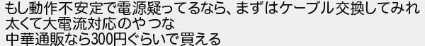 もし動作不安定で電源疑ってるならまずはケーブル交換してみれ 太くて大電流対応のやつな 中華通販なら円ぐらいで買える