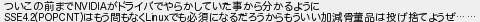 978: [] 2025/09/02(火) 15:09:14.08 ID:Nu2dj5y1 ついこの前までNVIDIAがドライバでやらかしていた事から分かるように SSE4.2(POPCNT)はもう間もなくLinuxでも必須になるだろうからもういい加減骨董品は投げ捨てようぜ…… http://mao.5ch.net/test/read.cgi/linux/1715327399/978