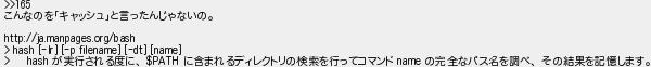 こんなのをキャッシュと言ったんじゃないの が実行される度に に含まれるディレクトリの検索を行ってコマンド の完全なパス名を調べ その結果を記憶します