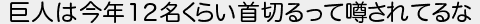335: (ワッチョイ 9160-V+uT [112.68.233.37]) [] 2022/09/14(水) 17:33:11.99 ID:LntRD1OV0 巨人は今年12名くらい首切るって噂されてるな http://tanuki.5ch.net/test/read.cgi/livebase/1663131806/335