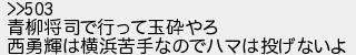 青柳将司で行って玉砕やろ 西勇輝は横浜苦手なのでハマは投げないよ