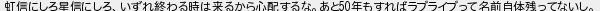 虹信にしろ星信にしろいずれ終わる時は来るから心配するなあと年もすればラブライブって名前自体残ってないし
