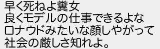 早く死ねよ糞女 良くモデルの仕事できるよな ロナウドみたいな顔しやがって 社会の厳しさ知れよ