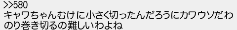 キャワちゃんむけに小さく切ったんだろうにカワウソだわ のり巻き切るの難しいわよね