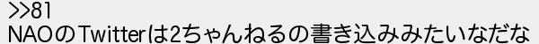 82: [] 2018/09/20(木) 17:50:22.53 ID:Q8SsWY7B >>81 NAOのTwitterは2ちゃんねるの書き込みみたいなだな http://lavender.5ch.net/test/read.cgi/net/1537166380/82