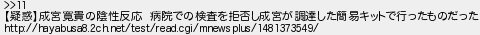 16: [sage] 2016/12/11(日) 02:00:32.58 ID:zQXrSpRk >>11 【疑惑】成宮寛貴の陰性反応 病院での検査を拒否し成宮が調達した簡易キットで行ったものだった http://hayabusa8.2ch.net/test/read.cgi/mnewsplus/1481373549/ http://medaka.5ch.net/test/read.cgi/offmatrix/1481323402/16