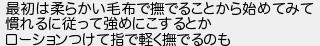 最初は柔らかい毛布で撫でることから始めてみて 慣れるに従って強めにこするとか ローションつけて指で軽く撫でるのも
