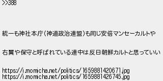 統一も神社本庁神道政治連盟も同じ安倍マンセーカルトや 右翼や保守と呼ばれている連中は反日朝鮮カルトと思っていい