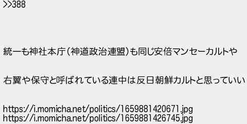 統一も神社本庁神道政治連盟も同じ安倍マンセーカルトや 右翼や保守と呼ばれている連中は反日朝鮮カルトと思っていい