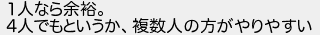 1人なら余裕 4人でもというか複数人の方がやりやすい