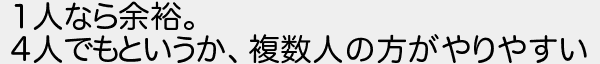 1人なら余裕 4人でもというか複数人の方がやりやすい