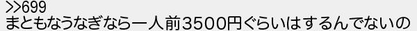 まともなうなぎなら一人前3500円ぐらいはするんでないの