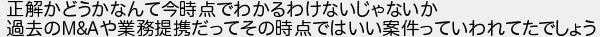 正解かどうかなんて今時点でわかるわけないじゃないか 過去のや業務提携だってその時点ではいい案件っていわれてたでしょう