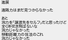 進展 遠隔力はまだ見つからなかった あと 消力を譲渡先をセルフだと思ったけど 全く体吹き飛ばないな 消力じゃなかった 移動距離力の技法のこれ 消力じゃなかった