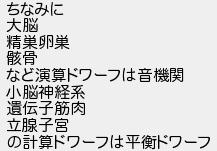 ちなみに 大脳 精巣卵巣 骸骨 など演算ドワーフは音機関 小脳神経系 遺伝子筋肉 立腺子宮 の計算ドワーフは平衡ドワーフ