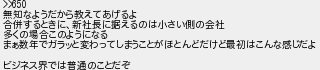 651: [sage] 2025/11/27(木) 19:37:44.40 >>650 無知なようだから教えてあげるよ 合併するときに、新社長に据えるのは小さい側の会社 多くの場合このようになる まぁ数年でガラッと変わってしまうことがほとんどだけど最初はこんな感じだよ ビジネス界では普通のことだぞ http://medaka.5ch.net/test/read.cgi/sec/1753629254/651