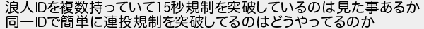 浪人を複数持っていて秒規制を突破しているのは見た事あるか 同一で簡単に連投規制を突破してるのはどうやってるのか