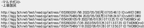 653: [] 2022/06/01(水) 21:30:58.60 ID:4hFWcGGX0 ・マルチポスト ・上級国民 http://egg.5ch.net/test/read.cgi/actress/1653600391/96 2022/05/30(月) 07:05:48.13 ID:cvWE1Dl80 http://egg.5ch.net/test/read.cgi/actress/1653475480/84 2022/05/30(月) 07:06:24.97 ID:cvWE1Dl80 http://egg.5ch.net/test/read.cgi/actress/1654006105/8 2022/06/01(水) 07:13:25.73 ID:TMD68Oro0 http://egg.5ch.net/test/read.cgi/actress/1653600391/136 2022/06/01(水) 07:13:37.35 ID:TMD68Oro0 http://egg.5ch.net/test/read.cgi/actress/1653475480/118 2022/06/01(水) 07:13:50.37 ID:TMD68Oro0 http://agree.5ch.net/test/read.cgi/sec2chd/1649073836/653