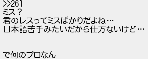 ミス? 君のレスってミスばかりだよね 日本語苦手みたいだから仕方ないけど で何のプロなん