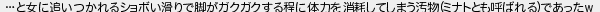 と女に追いつかれるショボい滑りで脚がガクガクする程に体力を消耗してしまう汚物ミナトとも呼ばれるであった