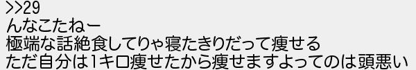 んなこたねー 極端な話絶食してりゃ寝たきりだって痩せる ただ自分はキロ痩せたから痩せますよってのは頭悪い