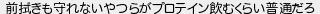 前拭きも守れないやつらがプロテイン飲むくらい普通だろ