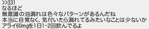 なるほど 無意識の油漏れは色なパターンがあるんだね 本当に自覚なく気付いたら漏れてるみたいなことは少ないか アライを日回飲んでるよ
